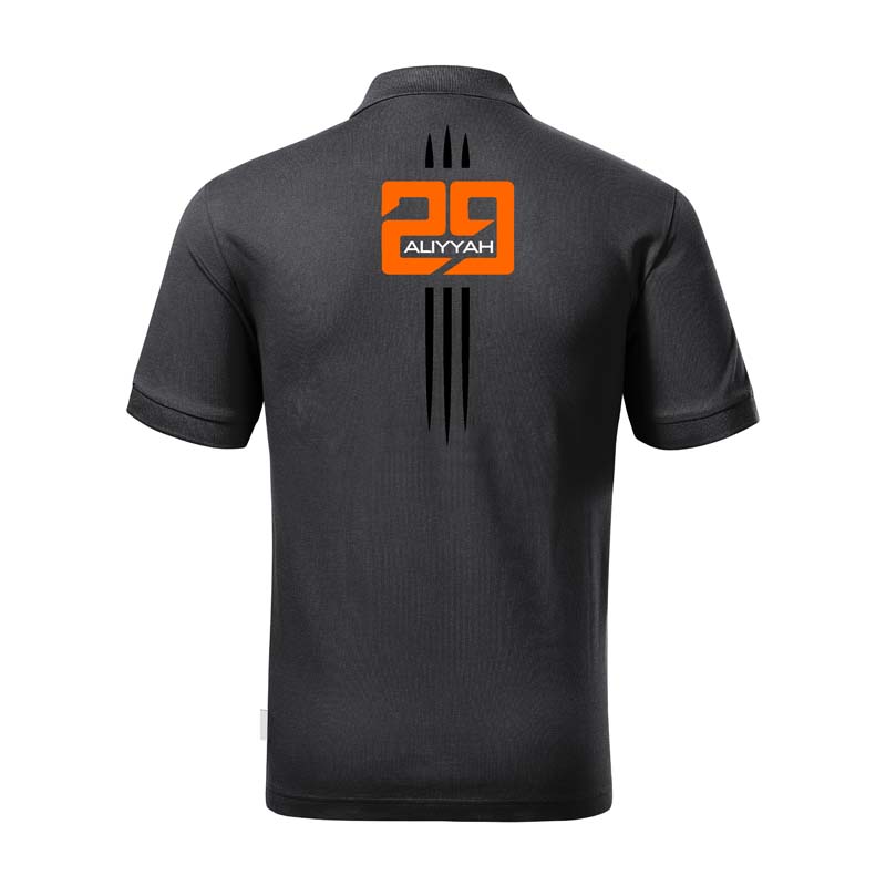 Men´s team polo t-shirt from the ALIYYAH 29 collection, color grey, 100% cotton, glossy foil print