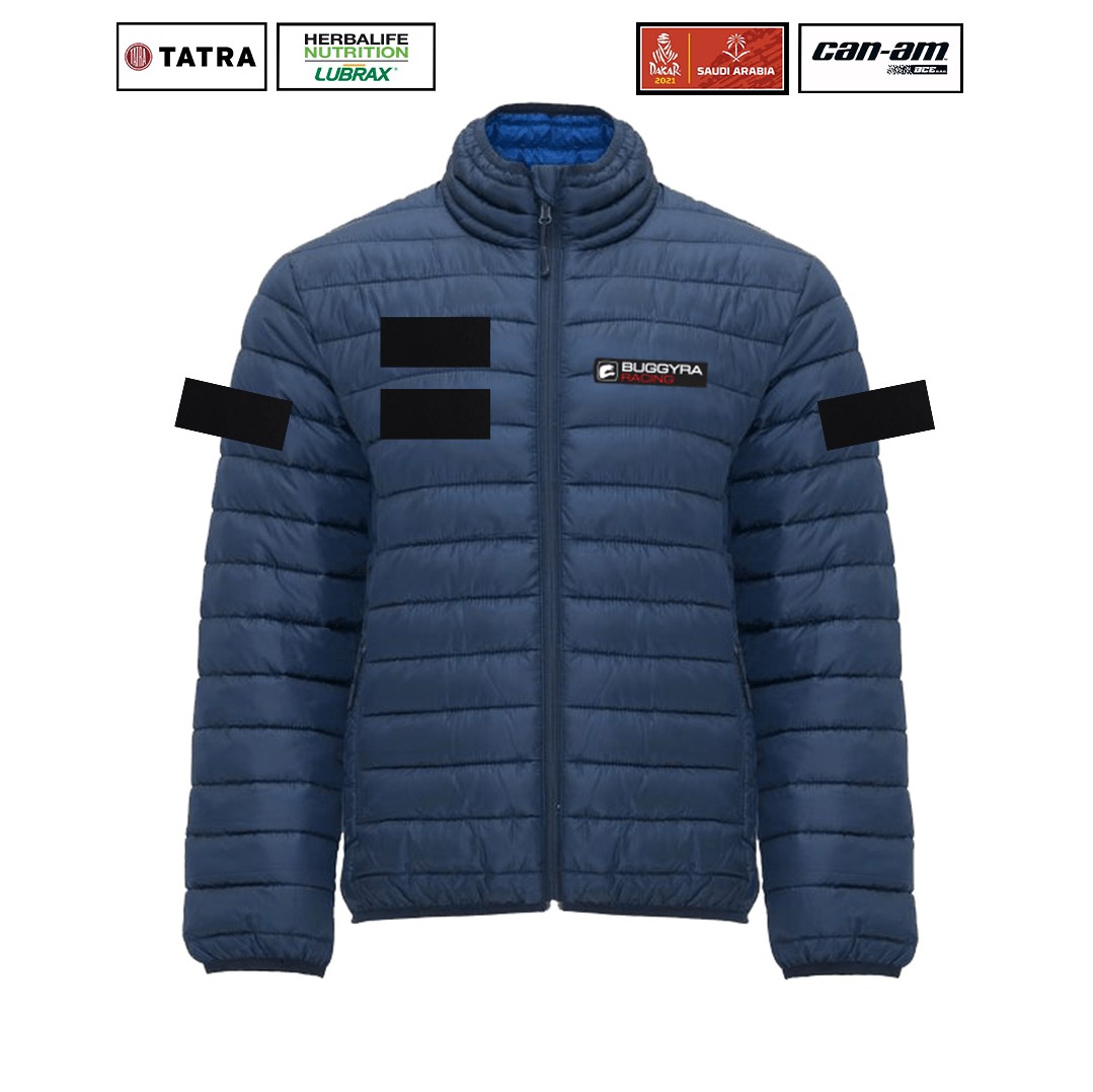 Prošívaná pánská modrá bunda BUGGYRA Racing s výplní s efektem peří.